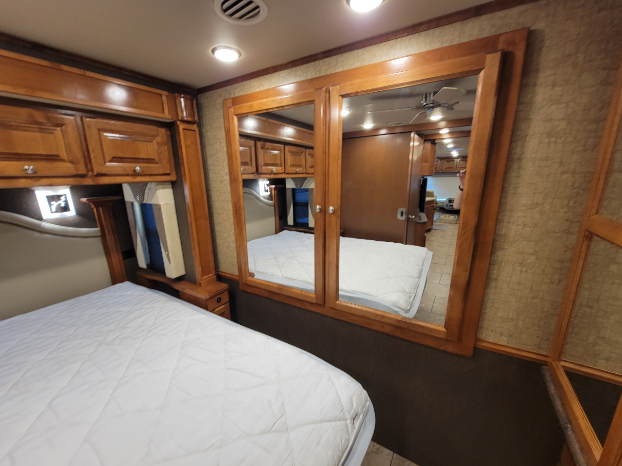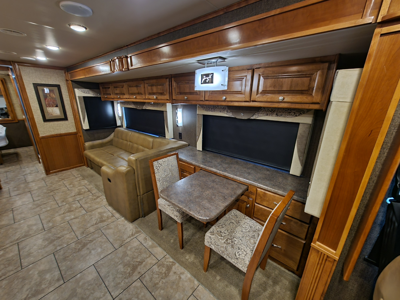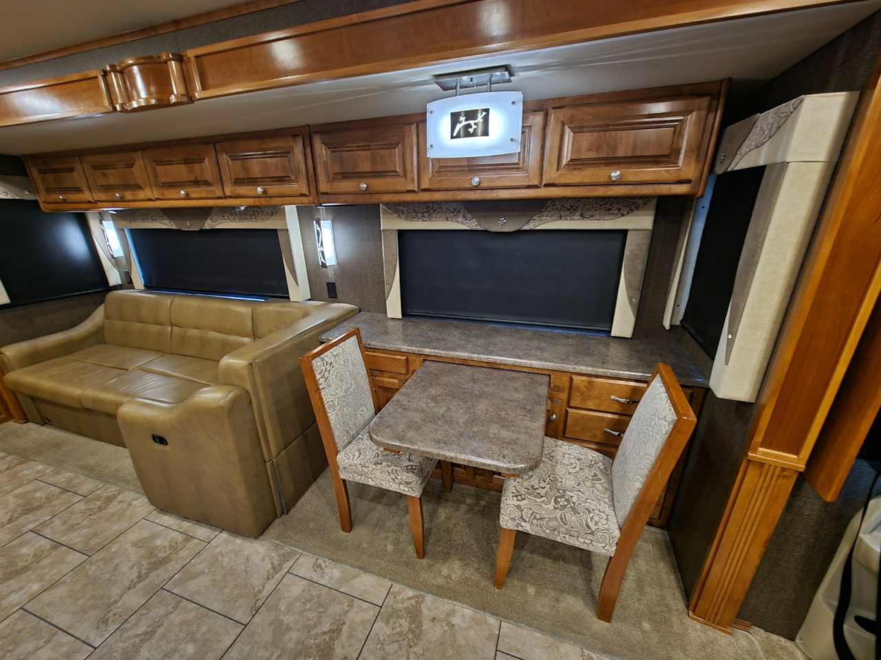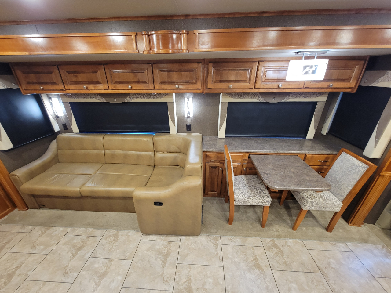 Electronics: Multiple HD flat-screen TVs, satellite-ready radio with USB ports, optional in-dash navigation, standard rear video camera