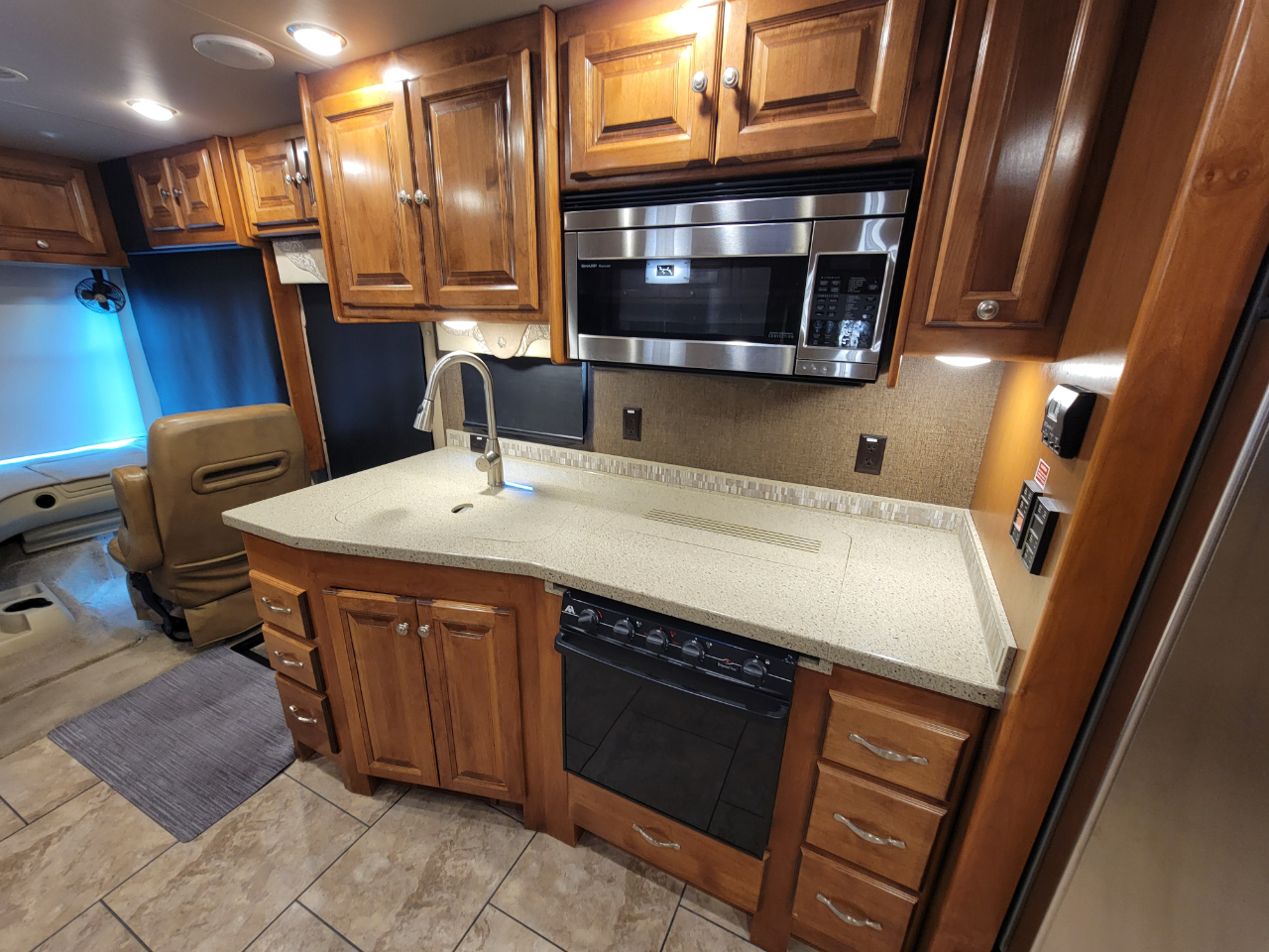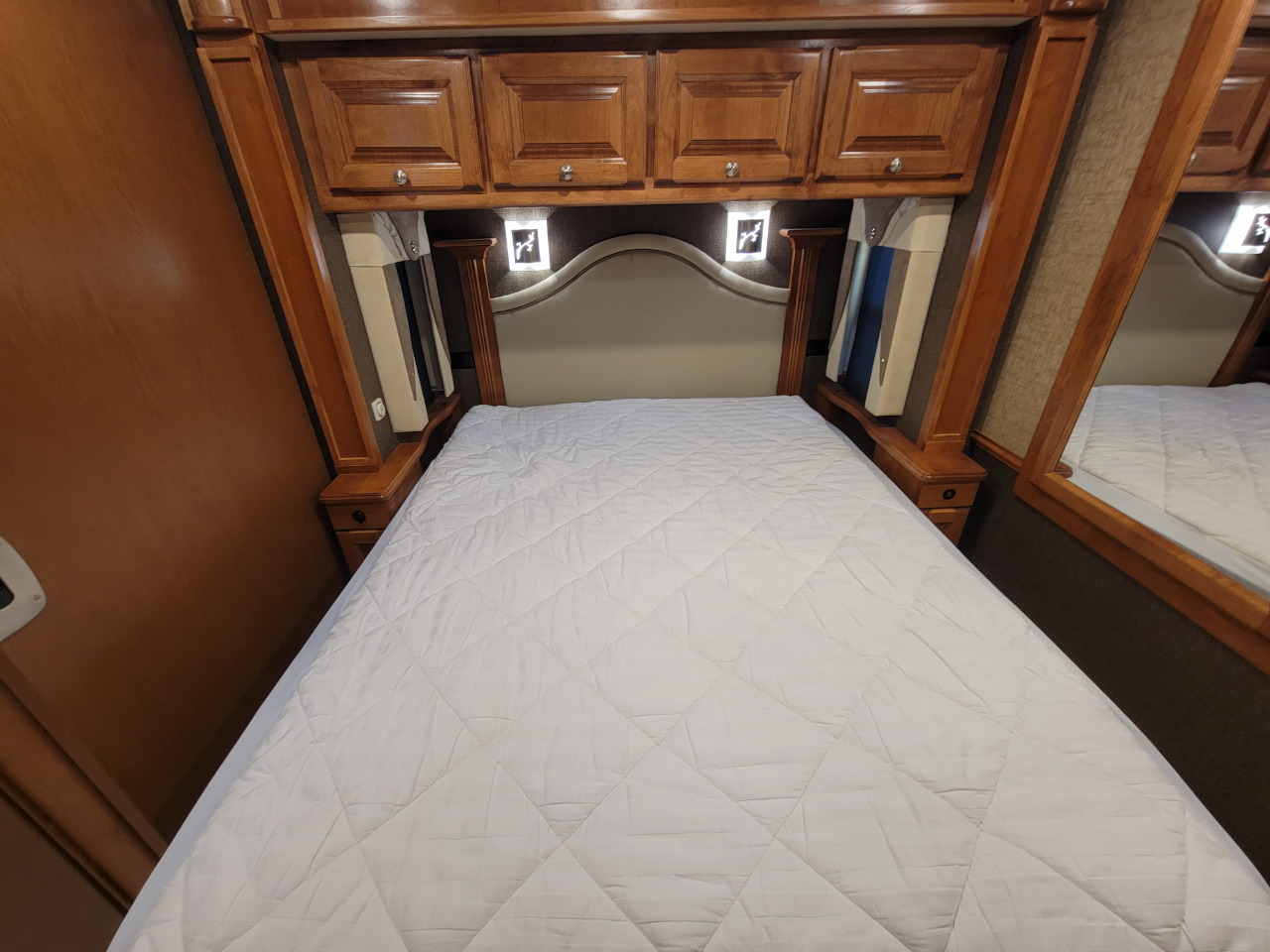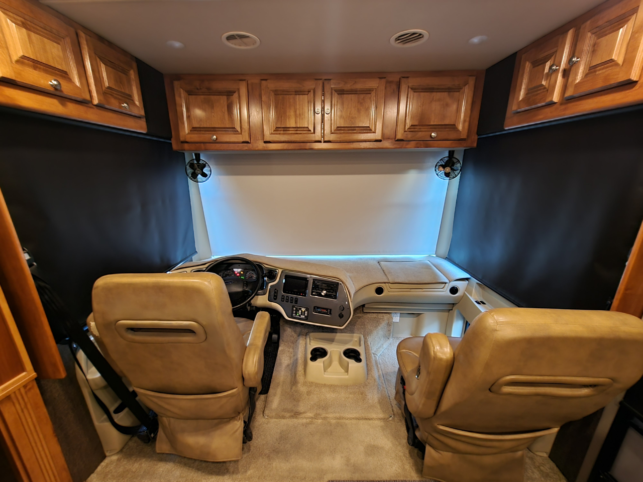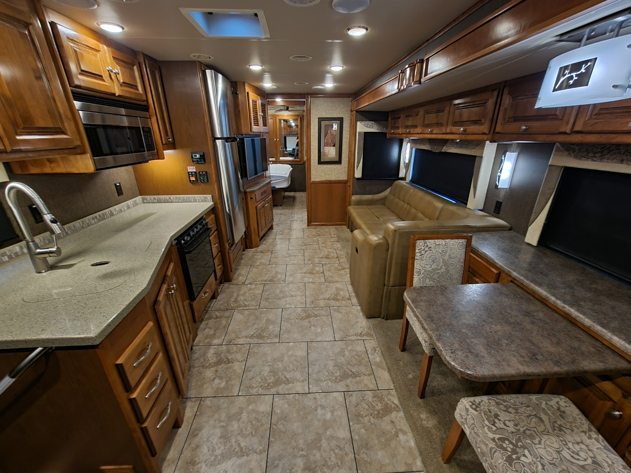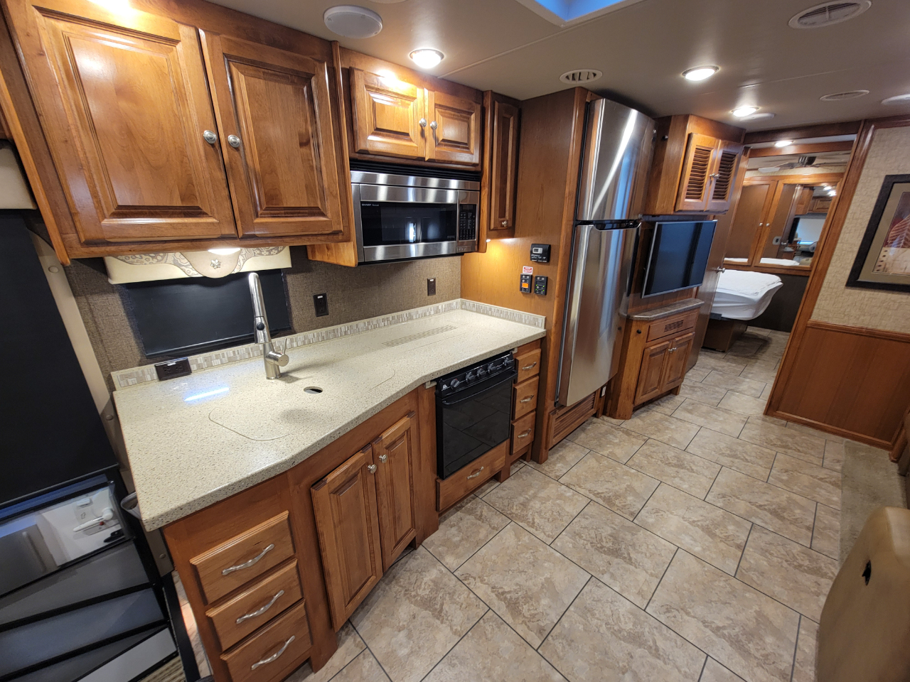 Electronics: Multiple HD flat-screen TVs, satellite-ready radio with USB ports, optional in-dash navigation, standard rear video camera