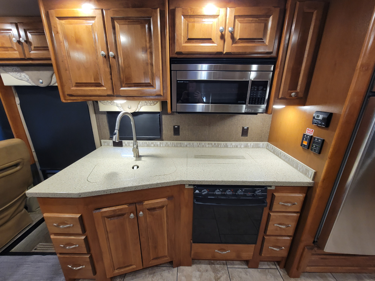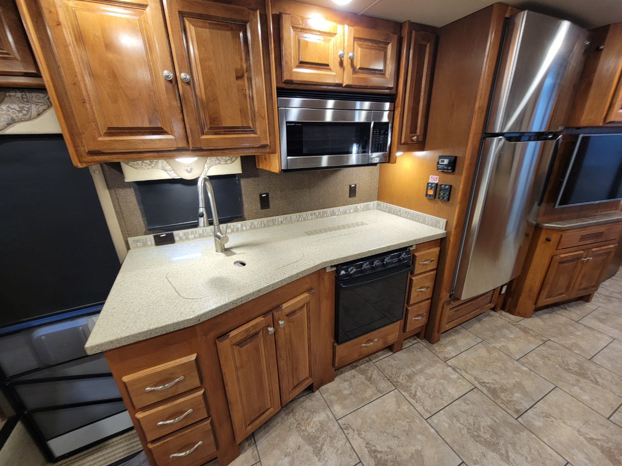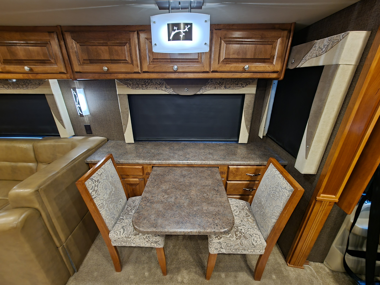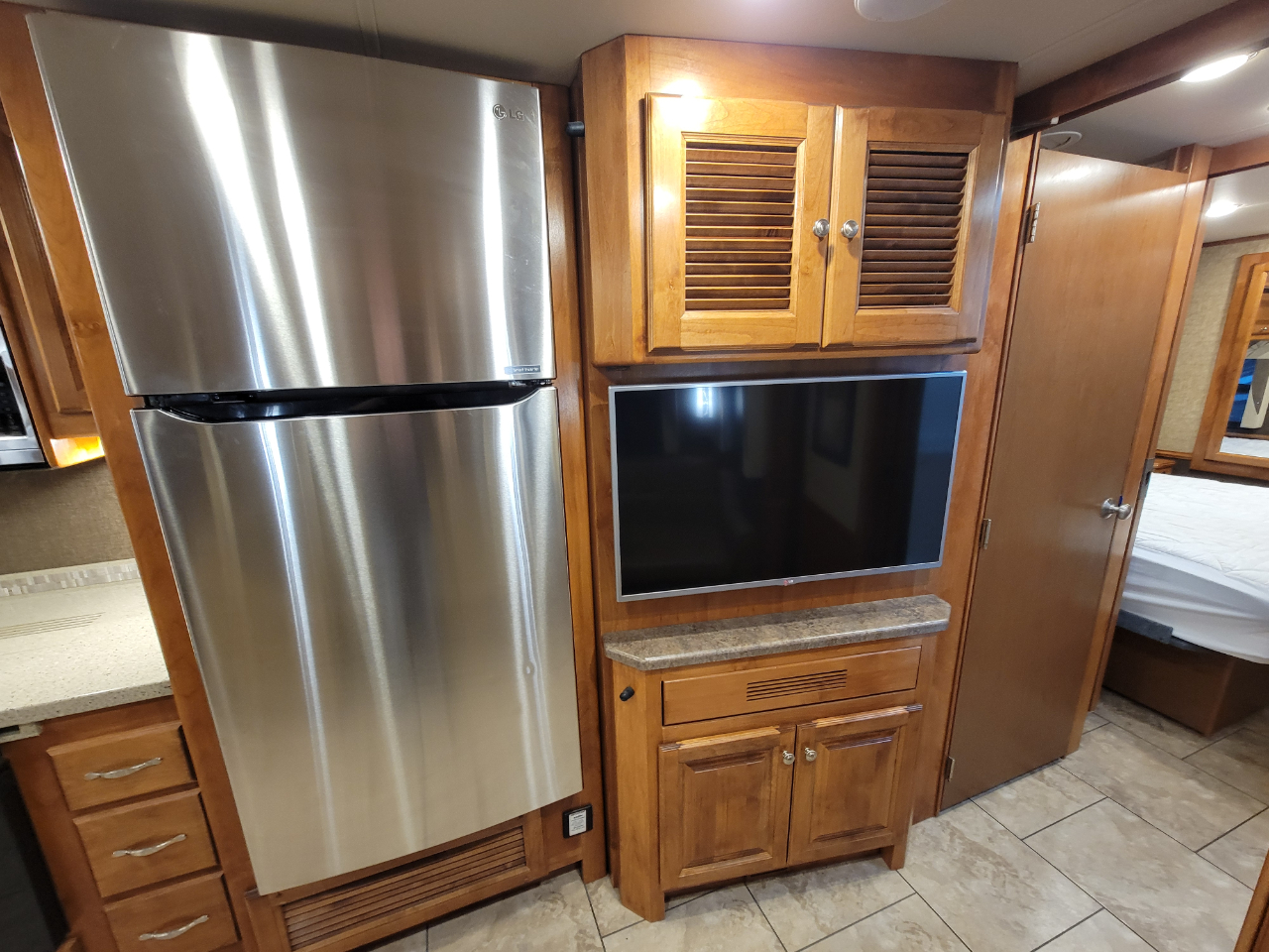 Electronics: Multiple HD flat-screen TVs, satellite-ready radio with USB ports, optional in-dash navigation, standard rear video camera